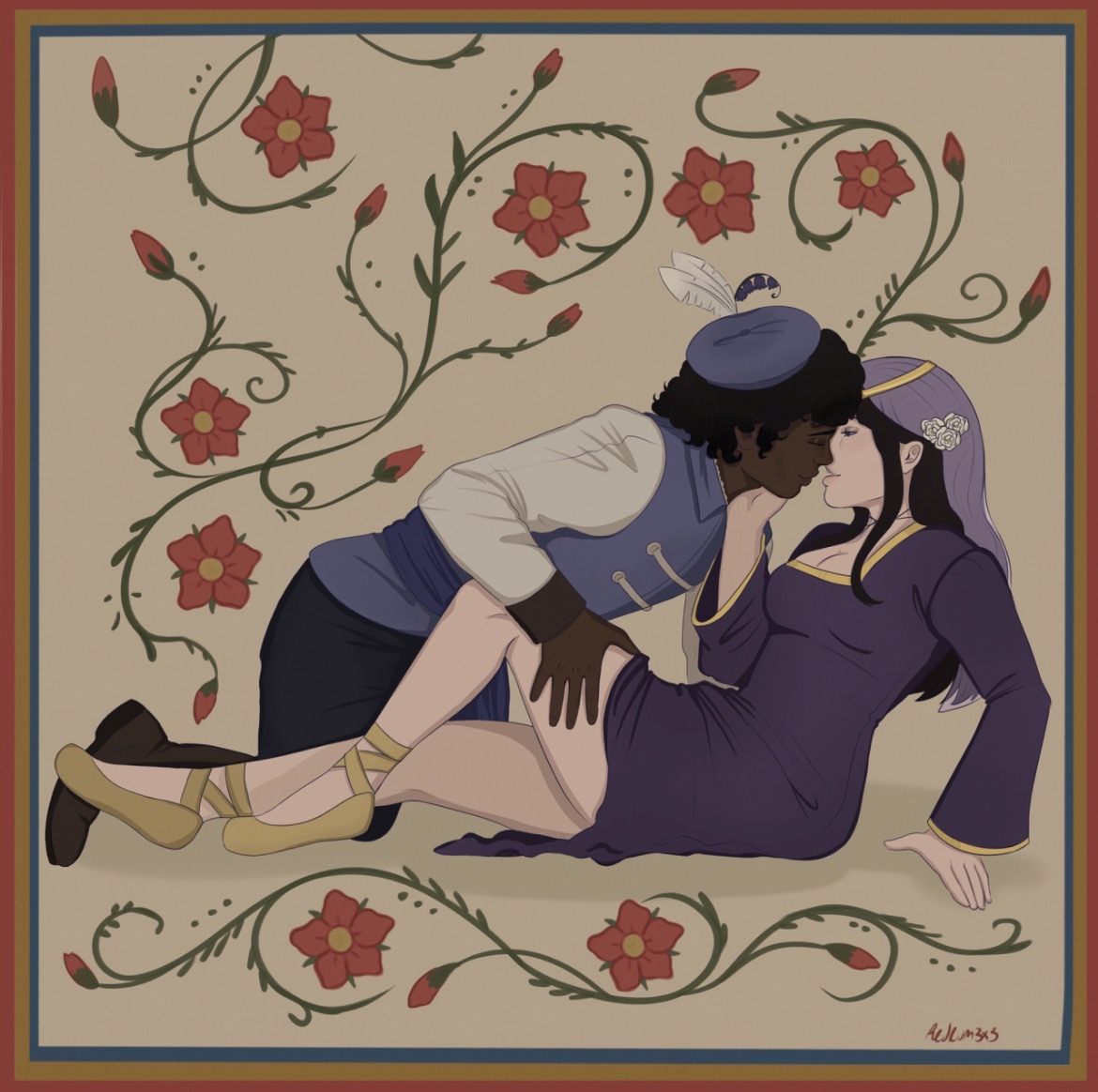 However, this Horatio has the added bonus of trauma!! :D He states explicitly to her that he used to be in love with Prince Hamlet, and now that him and most of the Danish court is dead with only him to carry on their legacies, he feels lost and unclear on his philosophy. In fact, Venita reminds him a lot of his dead friends. He first meets her while she's standing in a lake, mimiking Ophelia, and she's often headstrong and reckless like... most of the Danish court. Because of this he finds a certain comfort/nostalgia around her.